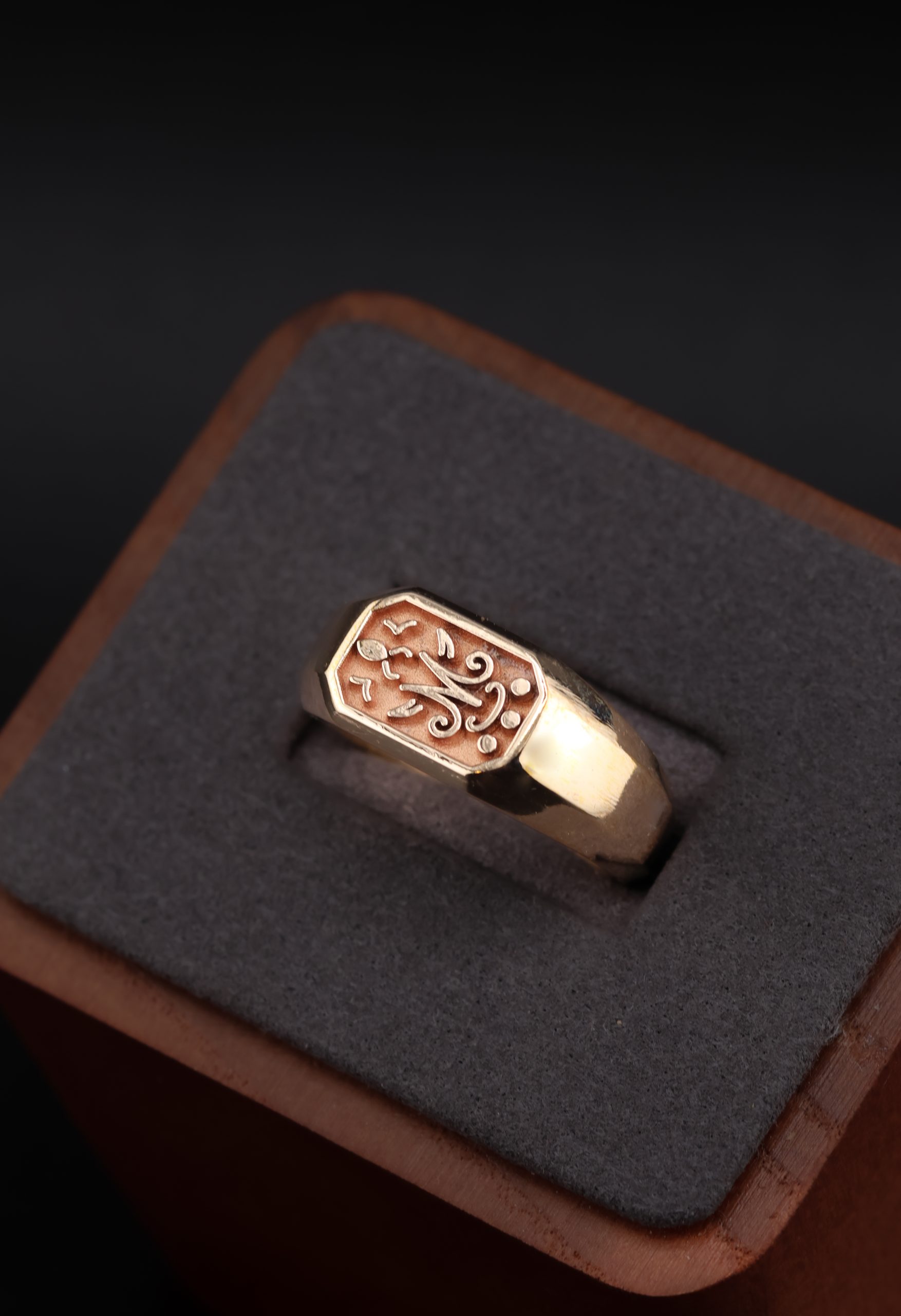Each bespoke rectangular bronze signet ring is handmade to order in durable bronze, chosen for everyday wear. Therefore, every detail can be tailored, from the engraving to the finish, resulting in a solid and highly personal signet ring made to your brief