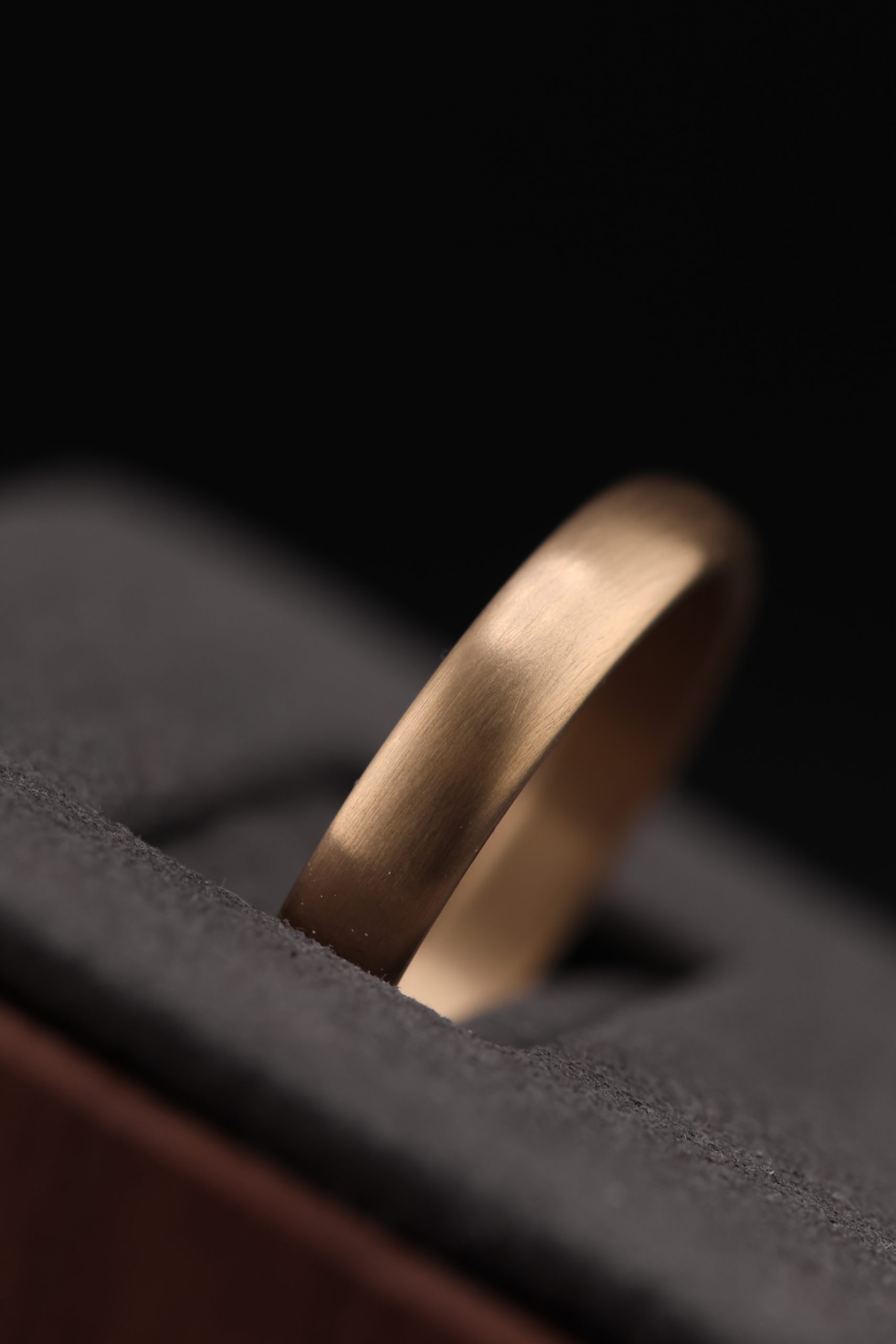 This bronze wedding ring features a D-shape profile with a satin finish, giving it a clean, understated look. The bronze has a naturally earthy tone, softer and more muted than gold, which makes it a strong alternative for those wanting something different without being bold or flashy.