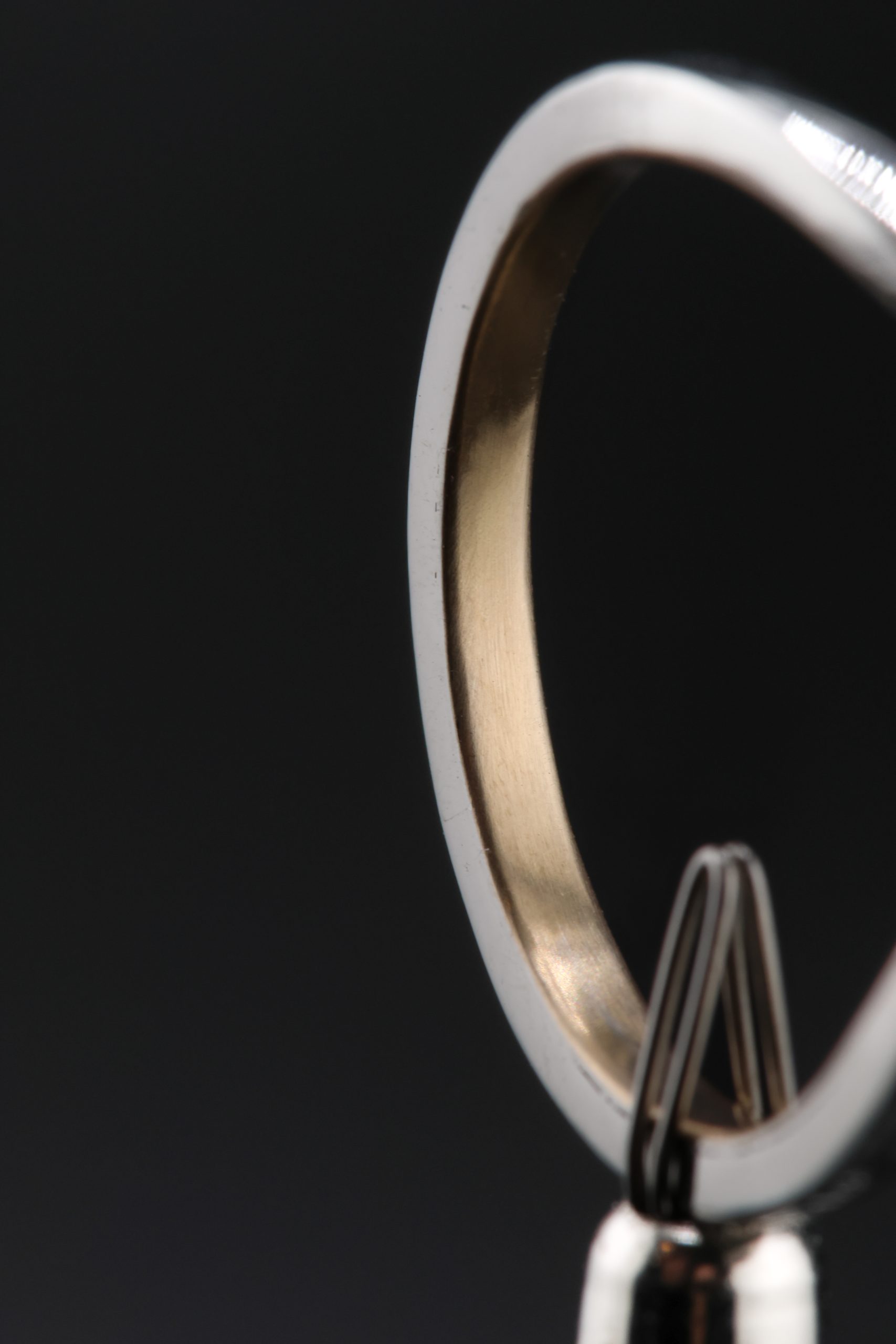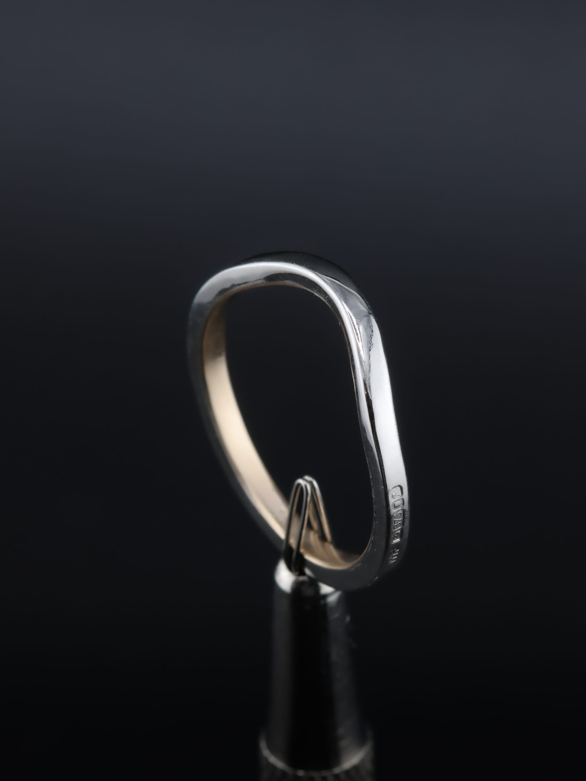 The bronze liner also offers a subtle way to connect with a men’s bronze wedding ring, allowing your rings to feel linked while remaining individual in design. Handmade to order in Devon, UK, the outer ring is available in sterling silver, white gold, or platinum, and each ring is shaped precisely to suit the engagement ring it will be worn with.